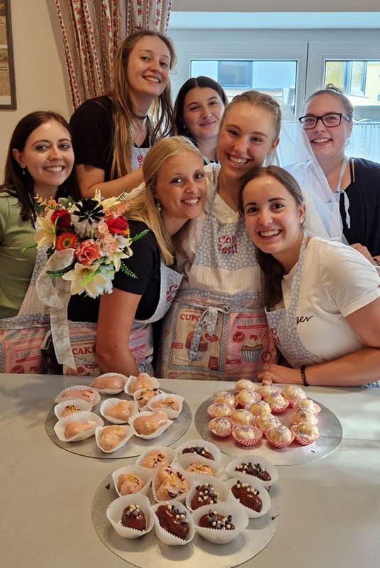 Du kommst mit deinen Mädels/Jungs zu mir in die Backstube, wo euch zu Beginn ein Glas Begrüßungssekt erwartet.
